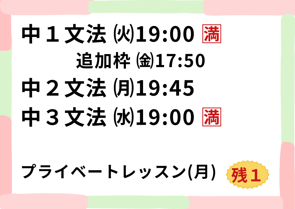 ※春休み中は、10:00〜14:00も可能な日がございます♪