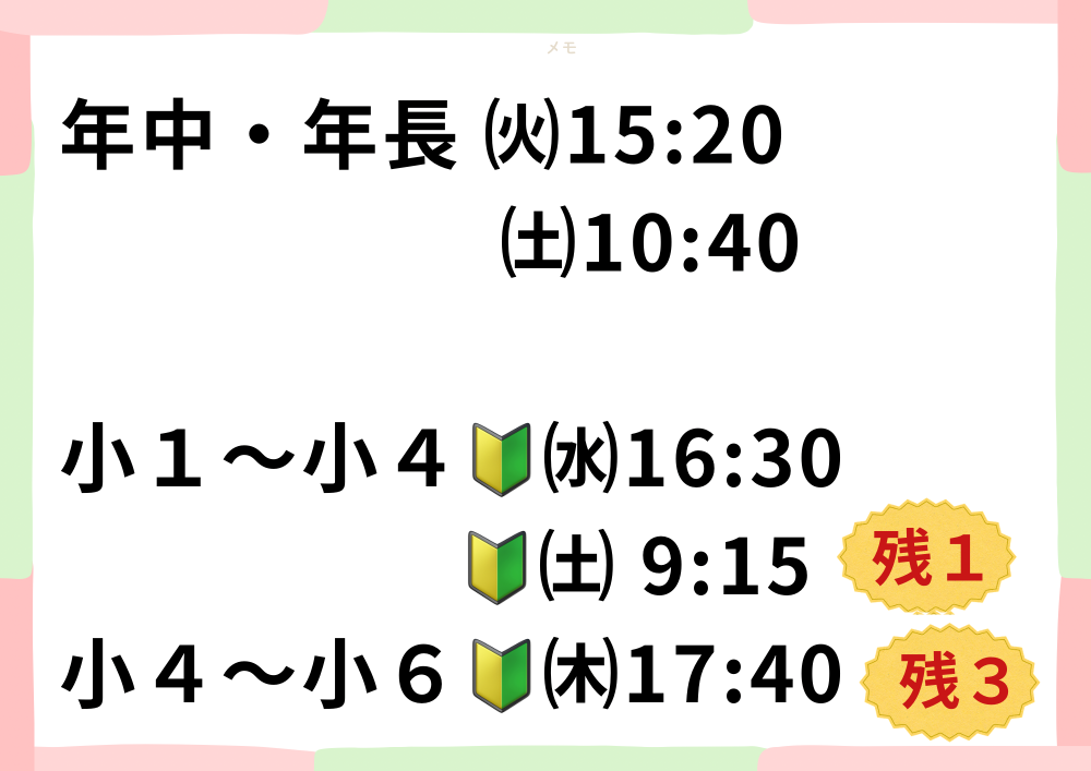 ⭐️お子さまが、レッスンに通える曜日・時間であるかご確認ください